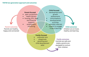 Through early childhood groups, family support, peer connection, specialist antenatal care, and pathways to education, training and employment, the multidisciplinary team continues to work with both parents and children. The YMYW approach is all about ensuring young parents and their children have the opportunity to thrive and break the cycles of hardship.