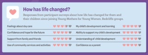Across all locations, YMYW provides early intervention for young pregnant and parenting women - under 26 in Brisbane, and under 20 in Caboolture and Redcliffe.