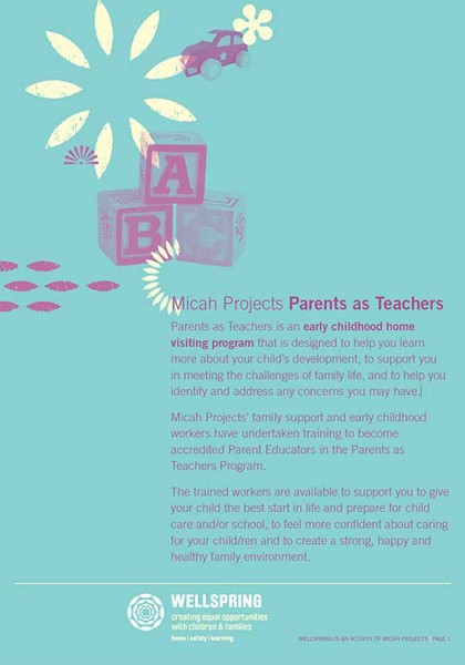 Parents as Teachers is an early childhood home visiting program that is designed to help you learn more about your child’s development, to support you in meeting the challenges of family life, and to help you identify and address any concerns you may have.