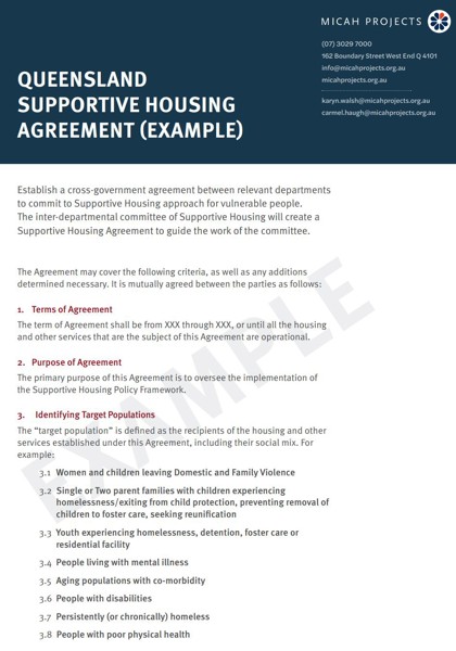 Supportive Housing Agreement to guide the work of the committee.